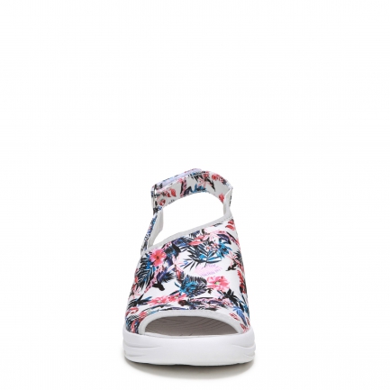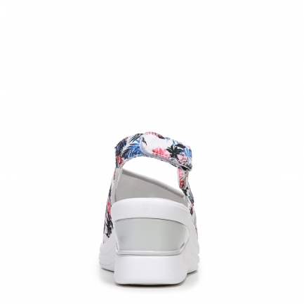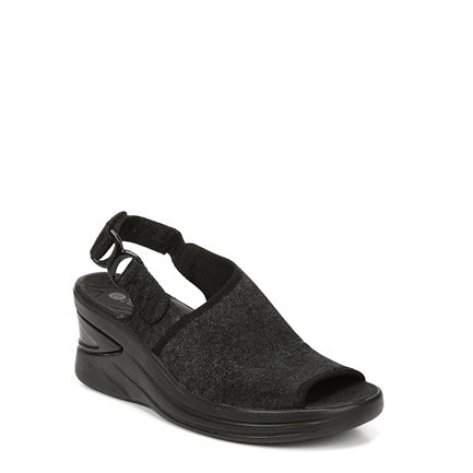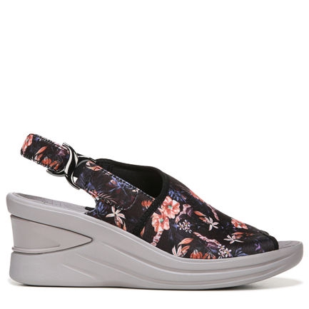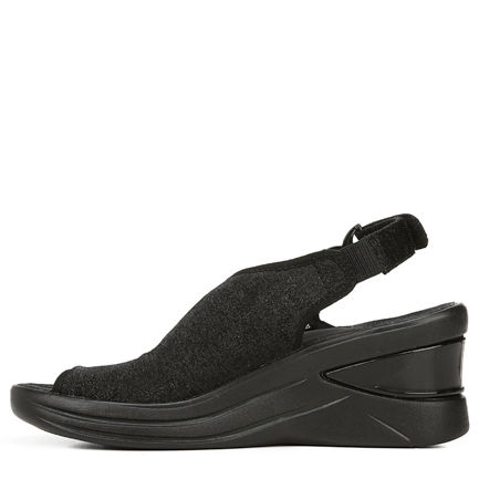 Stretch fabric upper in a sporty wedge style with a peep toe