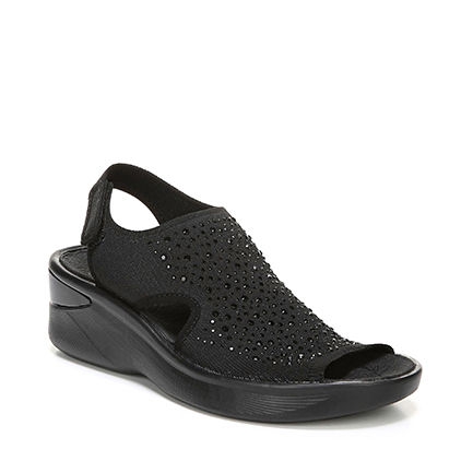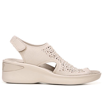 Fabric upper in a casual style with a peep toe Adjustable heel strap Decorative studs BZEES Cloud Technology Anti-microbial and odor control technology Free foam footbeds for extra cushioning and memory foam arch support Machine washable Non-slip, air-infused outsole 1 1/2" wedge heel